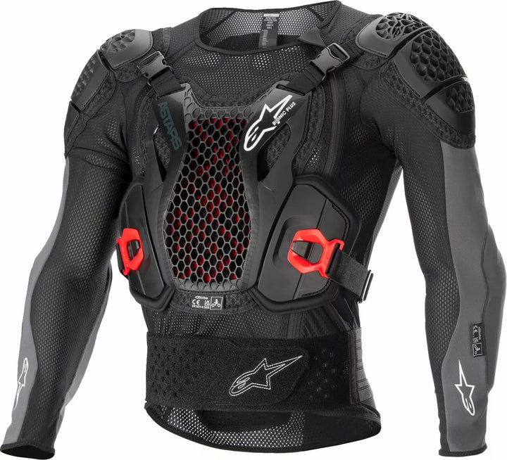Hybrid Nucleon Cell Protective Technology with Perforated Eva Inserts, One-Piece Chest Protection, Open Cell Components for Lightweight Ventilation, Durable Stretch Main Chassis With Secure and Customizable Fit, Adjustable CHESTAB Elastic Straps, Adjustable Waist Belt, Bionic Neck Support Compatibility with Elasticated BNS Pull Tabs, Back Protector EN 1621-2: 2014 Level 2., Chest Protector EN 1621-3: 2018 Level 2., Elbow & Shoulder Protectors EN 1621-1: 2012 2012 20121: 20121-1: 20121-1: 2012: 20121-1: 20121-1: 2018.
