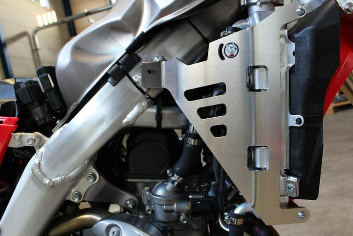 Create a Frame Around The Radiator to Protect It Against Shock you to Crashes. 4 mm aluminum spacers 12 mm diameter, Red Colored 3 Points of Fixation (Front and Back) Easy Assembling, Mounting Kit and Assembling Instructions Included