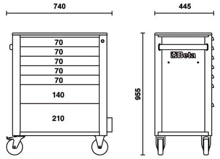 Thermoplastic Worktop, Front Centralized Safety Lock, New Castors with Metal Cores for Enhanced Sturdiness Main Features: Seven Drawers (588x367 mm) with Ball Bearing Slemes: 5 drawers, 70 mm high1 mm High1 Drawer, 140 mm High1 mm high Foamed Rubber Mats.four Castors 125 mm in Ø: 2 Fixed and 2 Steering (One With Brake) .front Centralized Safety Lock.static LOAD CAPACITY: 800 kg.thermoplastic workktop.Integrated side bottom.