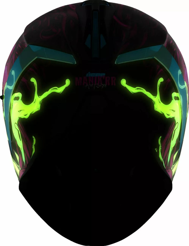 Continuous Venting System, FAG-FREE ICON OPTICS ™ Shield with Rapid-release ™ System, Injection Molded Polycarbonate Shell for Strength, Internal Airflow Geometry, Sculpted NECK Roll, Prolock ™ Switsch, the EXTERIOR WITH LOCKING SHIVING SWEQU Visor must only be used while the main face shield is in the fully closed position, removable Molded Breath Deflector, Removable Hydradry ™ 3-Piece Moisture Wicking Liner, Internal Speaker Pockets Work With Icon's R.A.U. Bluetooth Device, Includes Dark Smoke Dropshield ™ and Rubatone Black Speedfin ™
