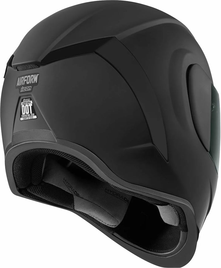 Injection Molded Polycarbonate Shell for Strength, Sculpeed NECK Roll, FAG-FREE ICON OPTICS ™ Shield with Rapid-Rease ™ System, ProLock ™ Positive Shield Locking System, Internal Airflow Geometry, Continly On Dropsh Shield is in the fully closed position, Removable Molded Breath Deflector, Internal Dropshield ™ with Exterior Switch, Removable Hydradry ™ 3-Piece Moisture Wicking Liner, Internal Speaker Pockets Work with Icon's R.A.U. Bluetooth Device, Includes Clear & Dark Smoke Icon Optics ™ Shield, Includes Dark Smoke Dropshield ™, Includes Rubatone Chin Vents ™