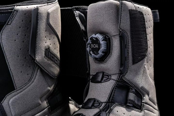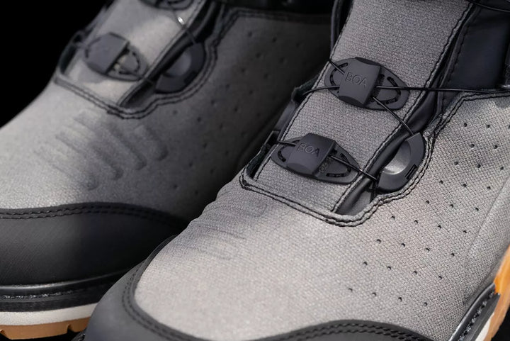 Upper is Comprised of TechTuff Leather, Reinforced Shin Plate Provides Cover for the Boa Lacing System for Optimized Fit, Event Waterproof/Breathable Liner Keeps The Interior Dry While D3o Ankle Inserts Provide Increased Shade CoveRed Construal Is A Combined Foam Cushioning, and an Oil & Slip Resistant Rubber Bottom Unit