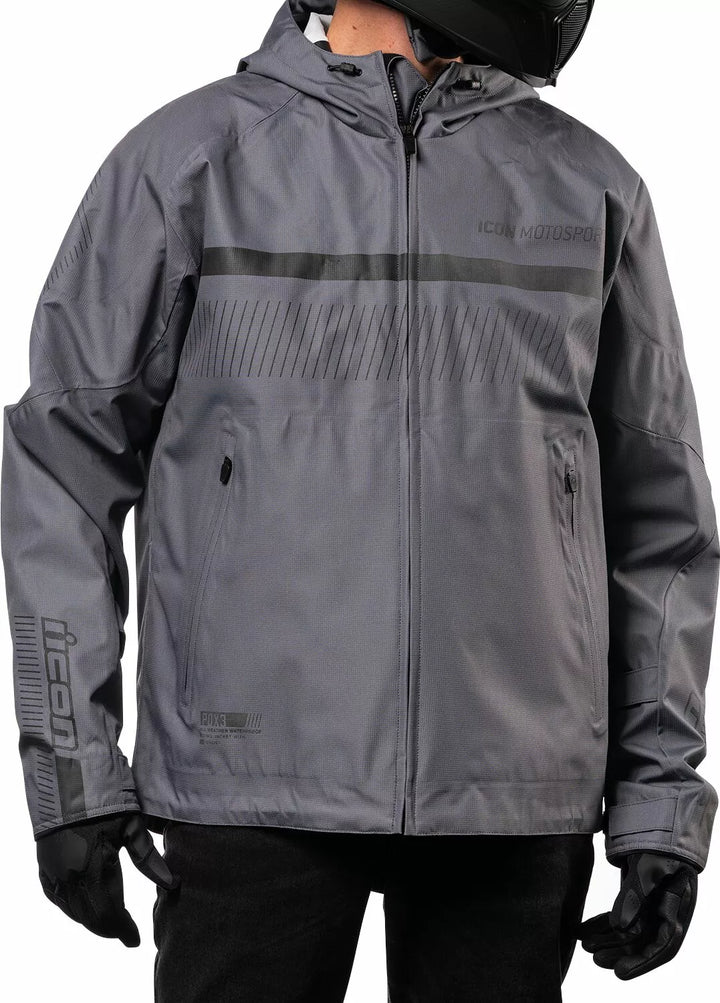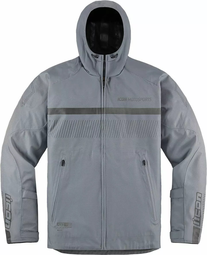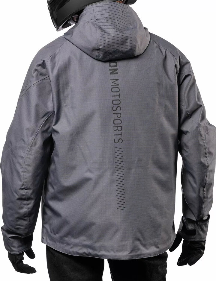 Removable Insulated Vest Liner, Internal 300D Polyester Reinforcings, Hycor ™ Waterproof/Breathable Chassis, Oversized Pit Vents, Icon® Relaxed Fit, Roll and Stow Hood, Back Protector en 1621-2 Level 1