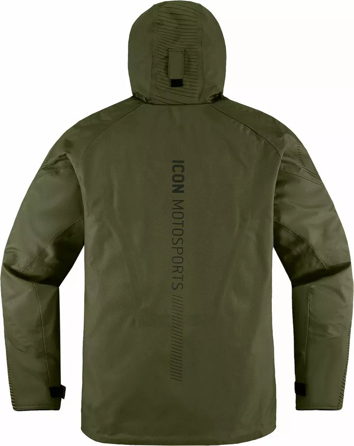 Removable Insulated Vest Liner, Internal 300D Polyester Reinforcings, Hycor ™ Waterproof/Breathable Chassis, Oversized Pit Vents, Icon® Relaxed Fit, Roll and Stow Hood, Back Protector en 1621-2 Level 1