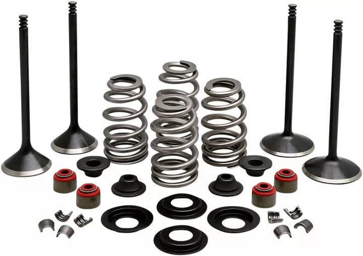 Kits Include Kpmi ᆴ or equivalent valve Spring kit, a full set of black diamond ル stainless steel standard size valves and are black nitride coated, H.T. (Heat Treated) Steel Valve Keepers and Valve Stem Seals (Where Applicable) For Engine Applications Listed, Black Diamond ル Valves Are One Piece Forged Stainless Steel That Are Fortified by a Special German Process To Improve Wear Properties and Reduce From One-Piece Forging of Either Ev8 Stainless Steel or Inconel-751 and Are Hard Chromed With 360 ᄚ Anode to Produce A Hard Chrome Finish, Compatible with Leaded and Unleaded Fuels, Sold as Complete Kit for One Engine