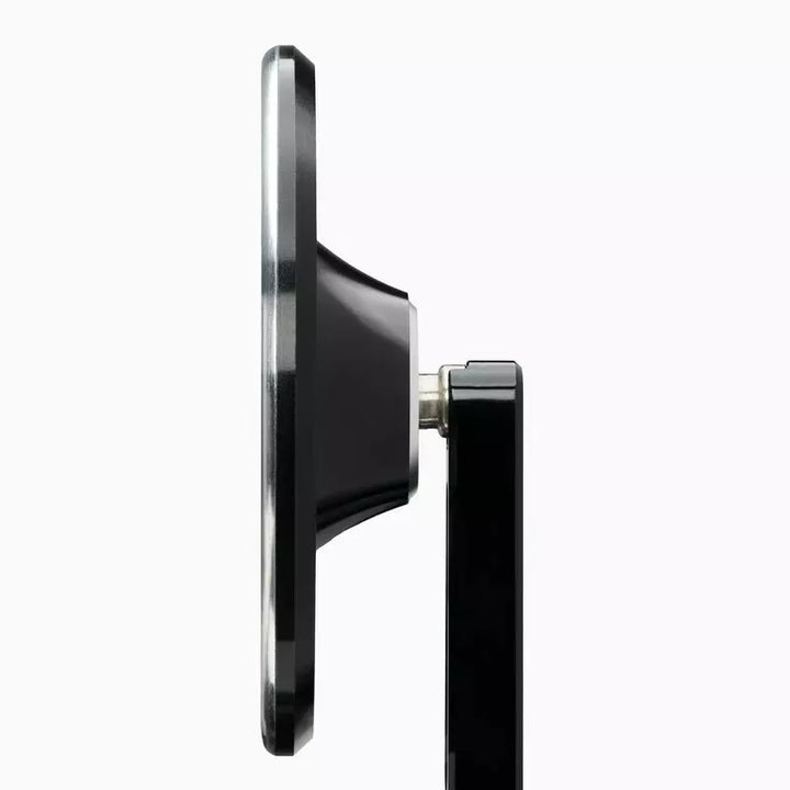 The Handlebar End Mirror with Swivel Mirror Arm and Defined Detent Angles is Perfect for Narrow Passages or Space Problems in the Garage. The Mirror has an Ece Marking and Can Be Mounted Above or Below the Handlebar., Our Glasless Mirror Series Mo.view is Unique Worldwide. The Special Feature of Our Mirrors Is The Patented Mirror Surface, Which Is Made Directly From the Metal of the Body. The Aluminum Itself is the Mirror Surface!, The Mirror Body Itself is Very Thin and Light, Creating a Weightless Design Without a Rim or Frame. The Convex Mirror Surface Is Produced by Fly Cutting Using Diamond Tools On Ultra-precision Machines in Berlin. It is then made resistant to oxidation, corrosion and abrasion by an elaborate plasma coating in a vacuum., The mirror body, mirror arm and the clamp for the handleable end are milled from solid aluminum on cnc machines and anodized to a high quality. All Screws are Made of Stainless Steel. The precise ball joints the mirror to be adjusted Comfortable and very stable. Glass Breakage or Glass Falling Out is Simply Not Possible!, A Special Feature of the Flip Series Mirrors Is The Pivoting Mirror Arm With Defined Locking Angles at 45 ° Intervals. This Allows the Mirror to Be Tilted Upwards As Required Without Changing the Mirror Setting., Extremely Practical for Narrow Passages, Space Problems in the Garage or for Transportation. The Locking Mechanism is Very Stable and Cannot Be Adjusted Accidentally. The Mirror does Not Vibrate, Even at High Speeds, IF Fitten Correctly., The Mirror Can Be Mounted Either Above or Below the Handlebars and Is Suitable for the Right and Left Side. It is mounted directly on the handleable end (22 mm and 1 inch) or, if the grips and fittings cannot be moved, using a mo.view bar adapter., Diameter of the mirror body: 99 mm., Thickness of the Mirror Arm: 7, Length of Head: 4.2 mm. Can be used for 22 mm and 1 inch handlebars., CLAMP WIDTH: 12 mm., Weight: 150 g., Scope of Delivery: 1x Rear-View Mirror Mo.view Classic 60 Flip (with ece marking) With arm, 1x Clamp & Instructions Manual.