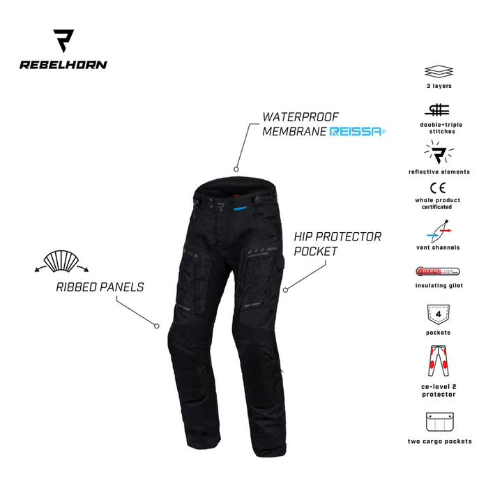 Durable and functional zipper (360 ° + a shorter one) to connect trousers with jacket.