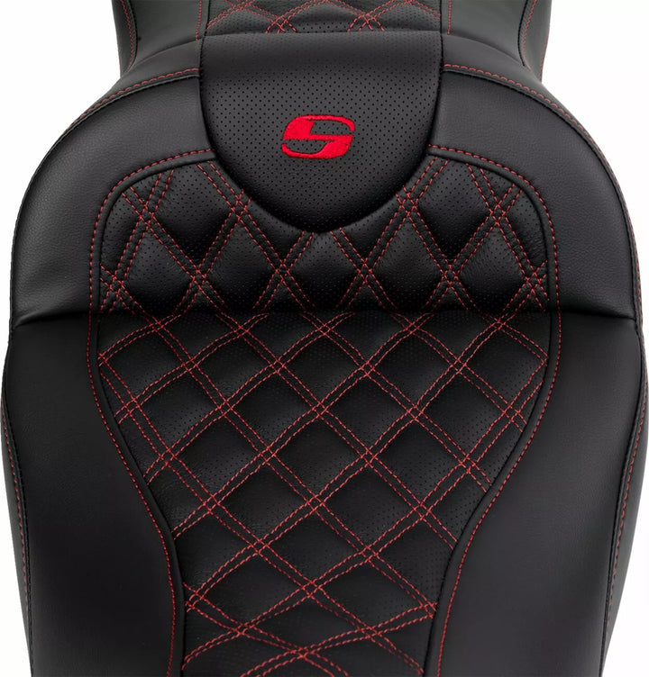Saddlegel ル In Front and rear Reduces Tailbone Pressure and Increases Circulation and Comfort for Both Driver and Passenger, Tall Lumbar Support and Wide Driver Saddle Supports The Back and Legs for Superior Comfort, While the Streamlined Nose Improves The Ride's Reach to the Rider's Reach to the Rider's Rech Long-Range Comfort By Separating The Seating Surface From The Lumbar Support To Reduce Tailbone and Back Pressure, Ventiled Soft Leather Upholstery Provides A Luxurious Look and Ride, Comes With A Fitten Rain Cver Specially Designed to Protect You Inserts and Weatherproof, No-Maintenance-Required Saddlehyde ル, Designed and Made in the USA