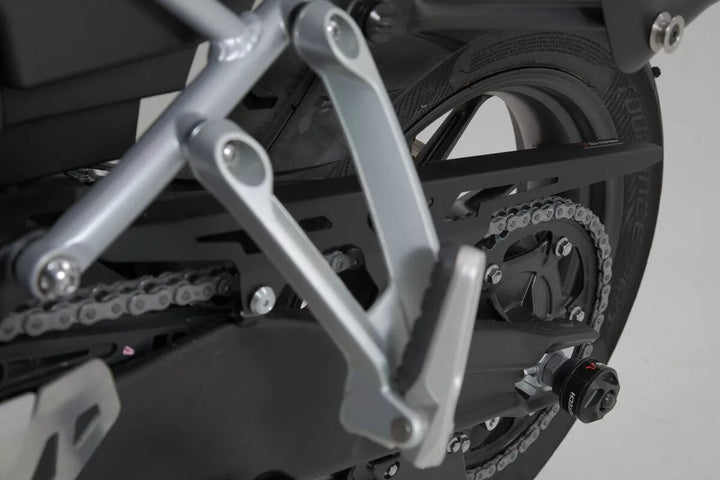 The SW-Motech Chain Guard is a high-quality alternative to the original Plastic Chain Guard, The Rubber-Mounted Attachment Is Easy to Install, Solid Aluminum Construction as an Alternative to Plastic Chain Guard, Perfect Fit That Hugs The Bike's Curves Attachment Dampens Driving Vibrations, Included in Delivery, 1 x Chain Guard, Mounting Instructions, Mounting Material