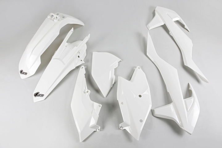 UFO plastics are renowned for their quality and their resistance to off-road use. They’re designed like OEM plastics and are easy to mount. They are used by today's MXGP top teams and former world champions. OEM typeKit contains: Front fenderRear FenderRadiator coversSide panels Made from UV, choc and torsion resistant injected plastic Color: White