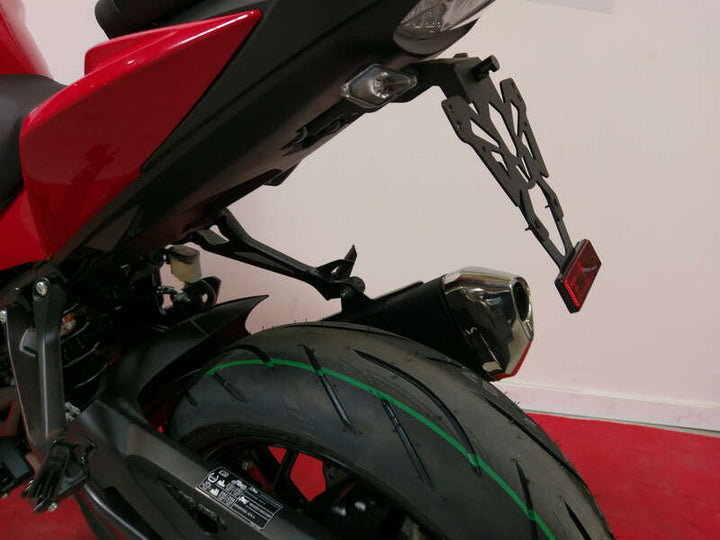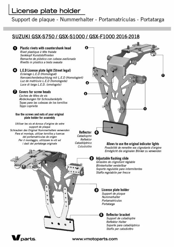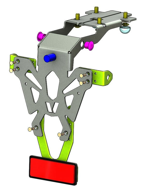 V PARTS license plates, inconspicuous and perfectly finished, are specially developed for each bike application. Thin and sturdy steel license plate holderBlack epoxy paintingCNC Manufactured – laser cut: precise finishingHoles to fix license plate, indicators and license plate lightningMade in France Contents : Street legal license plate lightningAdjustable reflector plateReflector Color: Black Material: Steel