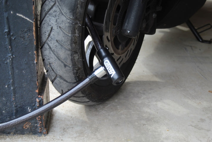 Vector Max Lock is a Robust and durable wire lock, perfect for securing motorcycles, bicycles and other vehicles. With one 20 mm thick braided steel cables and vinyl coating, combines this lock high security with smooth handling.