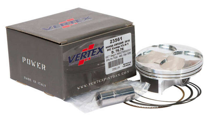 The well-known Vertex brand has developed its new range of pistons “Racer’s choice” thanks to its collaboration with the Better World team, in order to bring them performance and reliability. The draw and shape of the cap is optimized to improve t Unnamed: 25: A Bore size (mm): 95.00 Diameter Ø (mm): 94.95 Material: Aluminium Oversize: STD Piston compression: Racing Piston type: Forgé Rings Quantity: Set Stroke: 4T