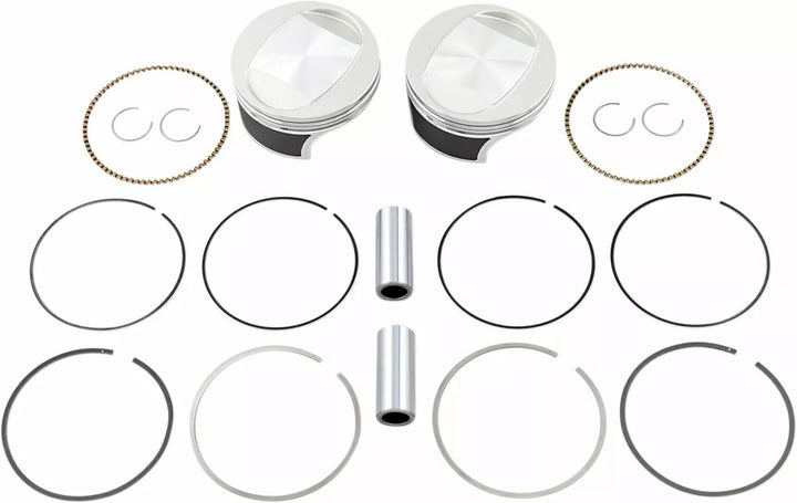 Forged Piston Crown with Genrous Valve Pockets for Big Valves and Cams, Precision-Fit Rings Selected for Each Application for Ultimate Sealing, Force-Fed Pin Oiling Provides Enhanced Lubrication of the Piston Pin, Power Power Lights, Ring Linduces Rima, Coating Reduces Friction, Providing Quiester Operation and Improving Scuff Resistance, Valued-Packaged with Two Pistons, Rings, Piston Pins and Circips, Piston Is Made in the USA