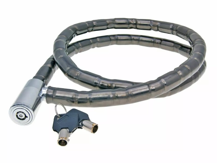 Zeer robuuste gepantserde kettingslot met flexibele rubberen coating. , Lengte 1,20m / diameter ca. 18 mm. , De klassieker onder tweewielige sloten., Leverde 2 sleutels.