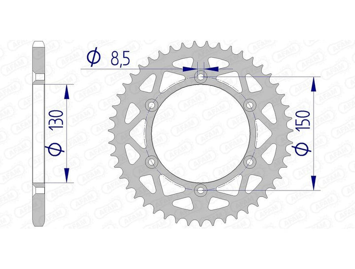 AFAM ALU Achterproces geproduceerd met een lichtmetalen Whice combineert lichtgewicht en weerstand. Het hoogwaardige productieproces en de snijprecisie maakten AFAM tot een wereldleider voor motorfietstransmissie-onderdelen. Aluminium Ultra-licht achter-Procetaluminum 7075 T6top van bereikproductie en kwaliteit lichter dan staalketen_pitch: 520.0 Materiaal: aluminium achter_prove_teeth_count: 51.0 Achter_proKet_pette