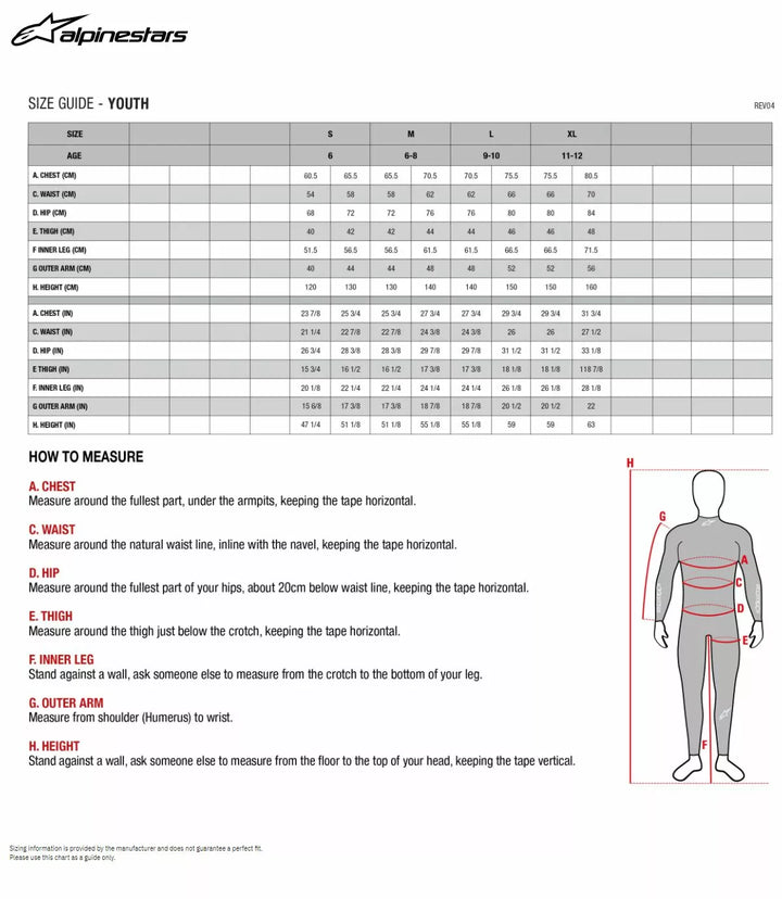 Alpinestars (MX) Jacket Yth Bio-Tech BWR S/M 654624-123-S/M