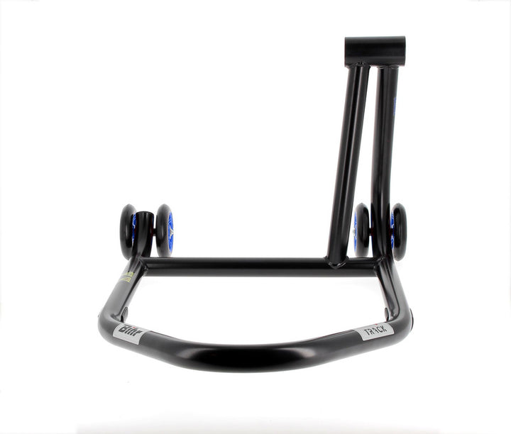 BiHR Home Track Nieuwe Paddock Stands zijn ontwikkeld in samenwerking met IndesPro, Spaanse fabrikant. Standbuizen in Ø 35 mm staal 4 Ø 110 mm wielen Mat Zwart Poedercoated verf metaaleffect Stings pennen zijn afzonderlijk te bestellen kleur: zwart en blauw maximale belasting kg: 250.0