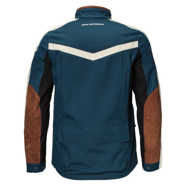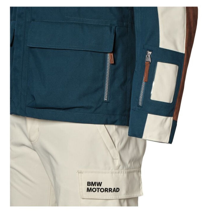 Details zoals Skinne -toepassingen op ellebogen en kraag Geeft de jas een exclusieve, robuuste look met een duidelijke verbinding met BMW's avontuurlijke erfgoed.