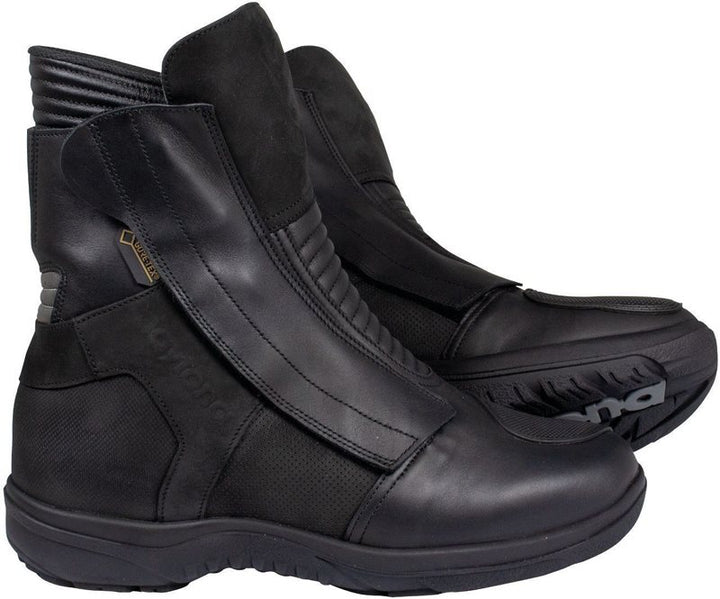 Een nieuwe toevoeging aan Daytona's familie van laarzen met extra hoog ingebouwde hakken. Iets lagere laars met buitenste deel in geolied water -Repellente sterk voltijd leer van rundvlees en details in Velours. Uitgerust met waterdichte en ademhalingsgore-tex®-memabranen en textielinterieurontwerp. 6 cm hoger via een binnenste kurkzool die ook bedekt is met leer. Sluiten via dubbele ritsen voor eenvoudiger toegang en comfort en de ingang is zacht en comfortabel. Ondanks zijn relatief lage hoogte, heeft het bescherming bij Tibia dat is opgevuld met latexfoam. Echte versterkingen in PU bij versnellingspedaal en bescherming voor enkels aan beide zijden die werden opgevuld met speciaal schuim met open cellen. Middle Sole in PU -schuim en plastic die wordt versterkt met gegalvaniseerd staal waardoor het stijf maar nog steeds loopt. Reflex-inserts van 3M-Scotchlite bij hiel en rubberzool die ook slipbestendig is. Ashoogte ca. 20 cm.