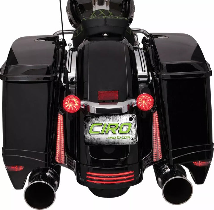 Ontworpen om de ruimte tussen de zakken en het spatbord te vullen met een perfecte pasvorm, dramatisch verhoogt de zichtbaarheid van de achterzijde, unieke CIRO multifunctionele controller biedt rood lopende en remverlichting met barnsteen turn signalen, plasma-led-signaaltechnologie-afstand, eenvoudige plug-and-play installatie