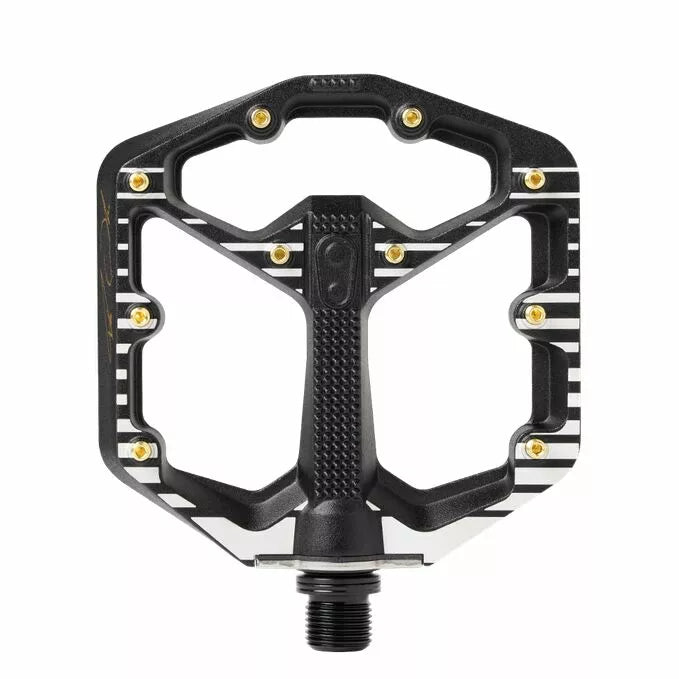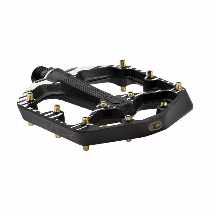 Ons pro-level platformpedaal, ontworpen met Fabio Wibmer., Dubbele geanodiseerde, laser-ethed afwerking., Optimaal oppervlak., Minimaal profiel 11 mm-13 mm dun., Concaaf platform voor veilige voeten. Voor eenvoudig onderhoud.
