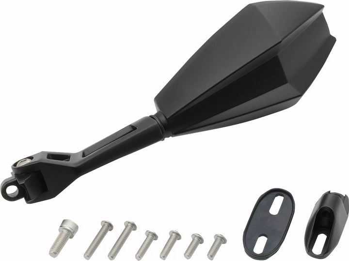 ECE-goedgekeurd., Materiaalspiegelkop: ABS, Materiaal Mirror Arm: Aluminium, een zwarte spiegel voor de rechter/linkerzijde om te monteren op het handvat/kuip