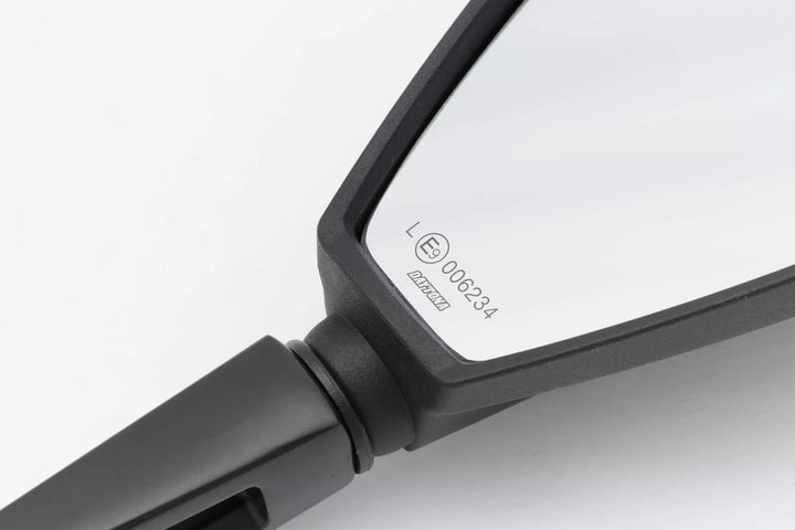 ECE-goedgekeurd., Materiaalspiegelkop: ABS, Materiaal Mirror Arm: Aluminium, een zwarte spiegel voor de rechter/linkerzijde om te monteren op het handvat/kuip