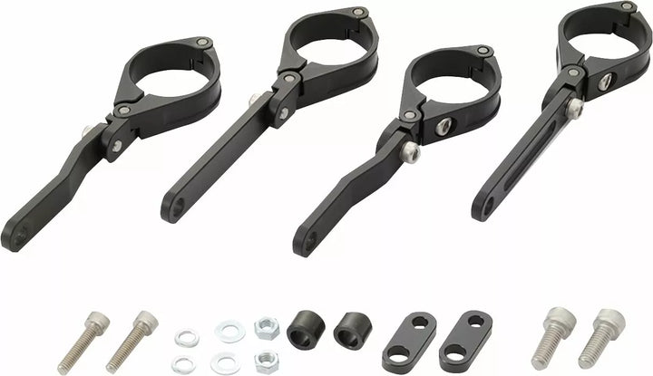 Verstelbare dual-as koplampbeugel gemaakt van CNC-bewerkt aluminium in het zwart, kan de vork klem verticaal worden aangepast, waardoor de koplamppositie kan worden aangepast in de voor-back Dire M8 Indicator Mount Kit is opgenomen voor discrete installatie