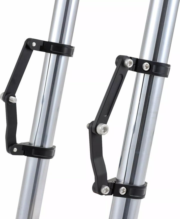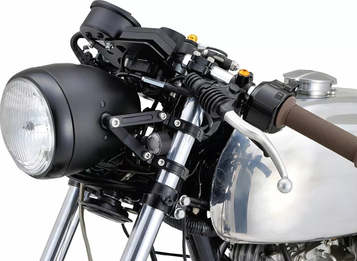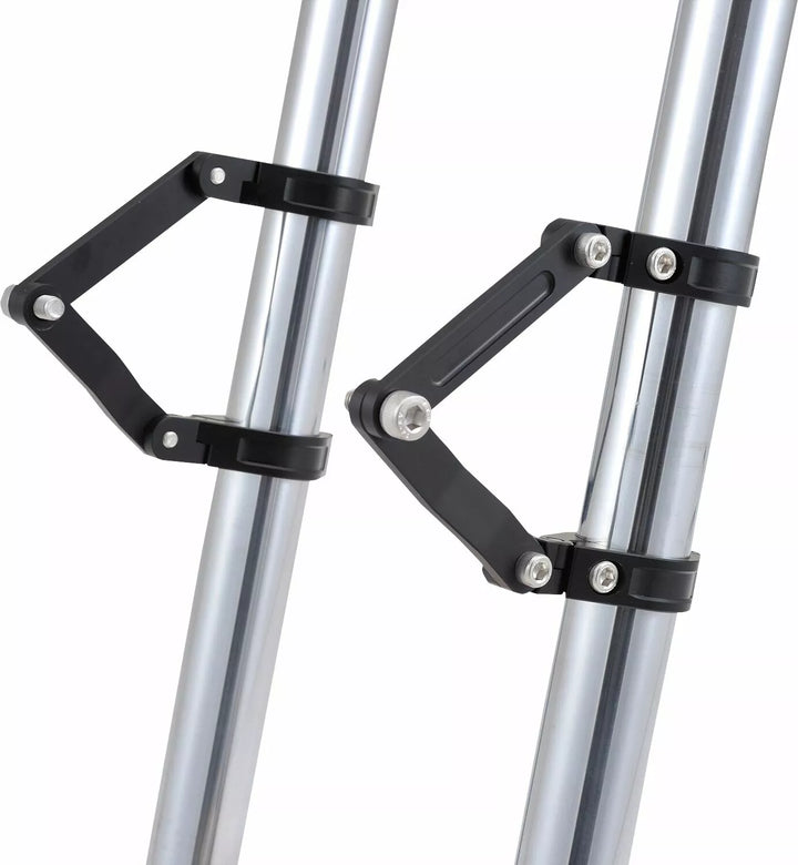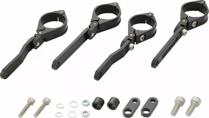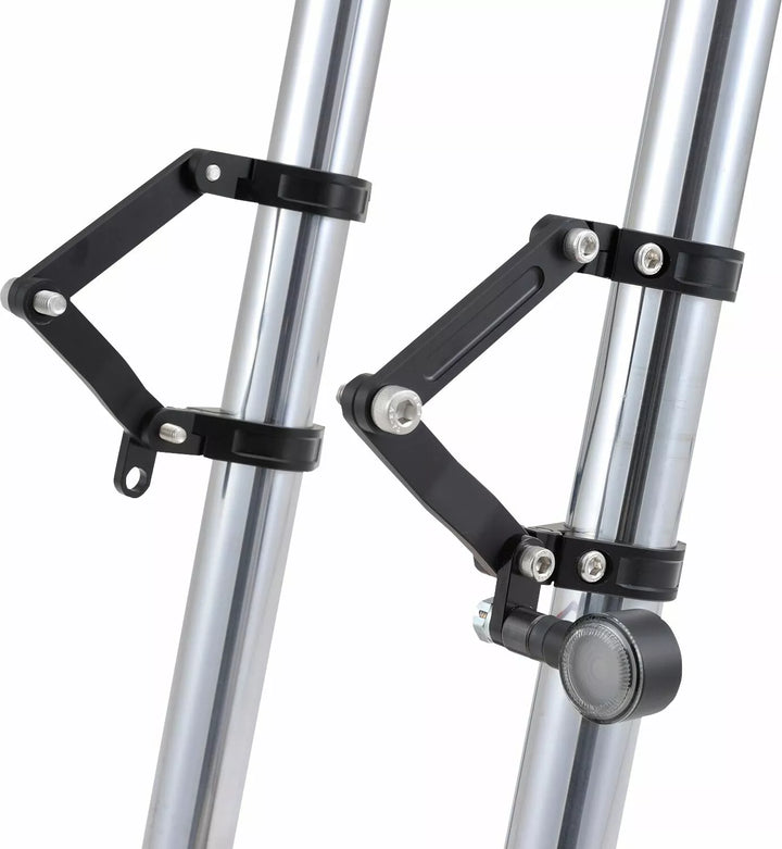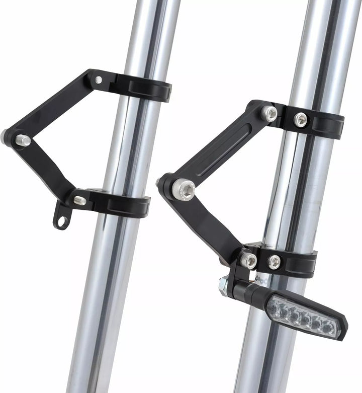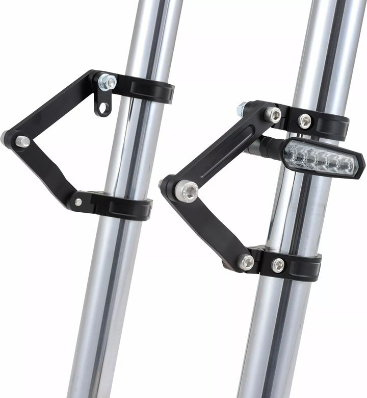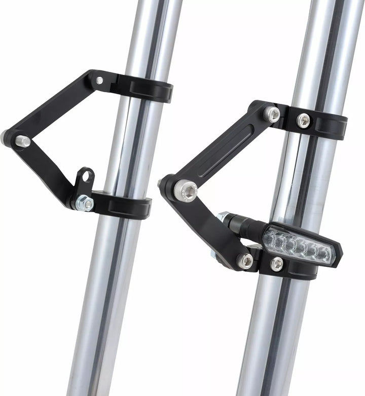 Verstelbare dual-as koplampbeugel gemaakt van CNC-bewerkt aluminium in het zwart, kan de vork klem verticaal worden aangepast, waardoor de koplamppositie kan worden aangepast in de voor-back Dire M8 Indicator Mount Kit is opgenomen voor discrete installatie