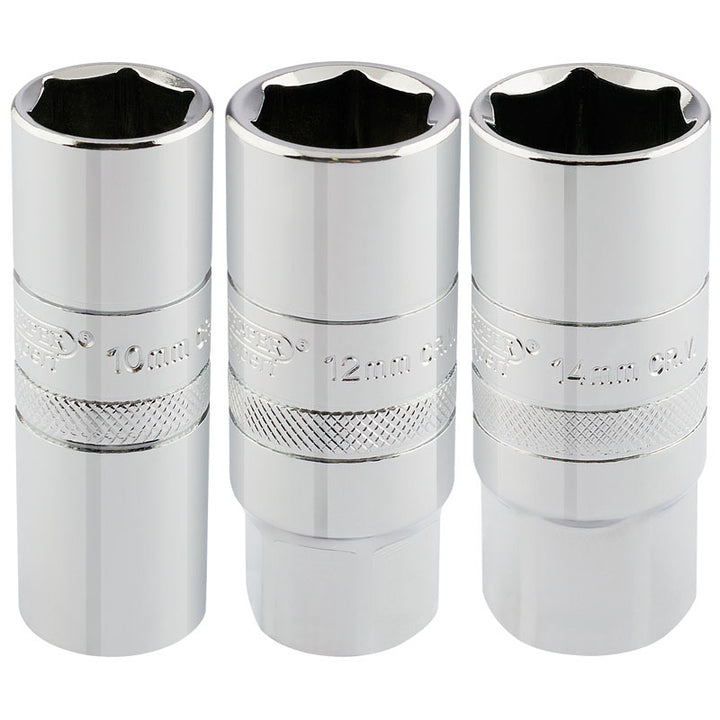 3 bougie Sockets: 16, 18 en 21 mm. Elke socket heeft een gekartelde ring voor extra grip. Bougie Socket kan worden geteeld dankzij 1/2 "Driver Materiaal: Chrome Vanadium Steelfitted met rubberinzetstuk voor bougie -isolatiebescherming en retentie Point_Count: 6.0 Square_Drive_Size: 1/2 '' '' '