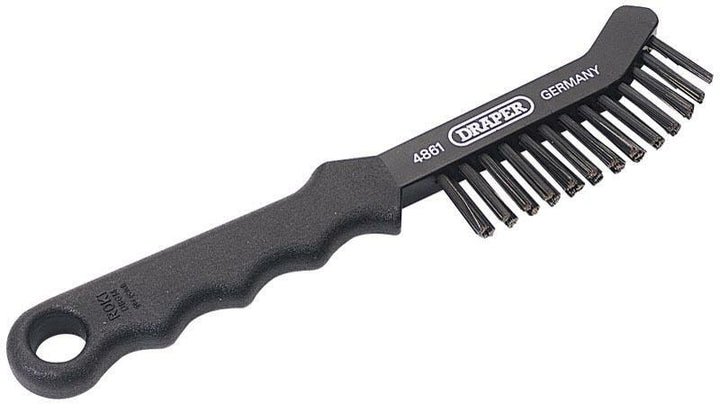 Taai gevormde plastic stockhaved, gehard staaldraad vulborstelkop is gebogen om het reinigen van hoeken te reinigen: staal
