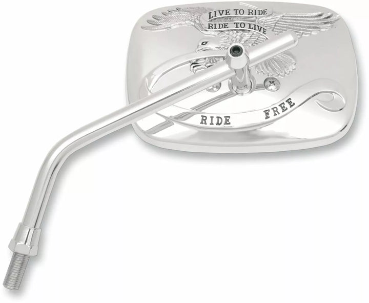 Universal Steel Mirror met "Ride Free" -bericht en afbeelding op spiegel, Mirror is volledig verstelbaar, 10 mm montage