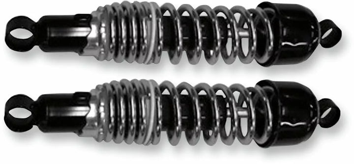 Hebben een glanzende zwarte body en korte bovenste mantel met dubbele chromen veren bovenkraag en gestimuleerde pre-load adjusters, elke schokset omvat 10 mm, 12 mm en 14 mm bussen voor alle toepassingen