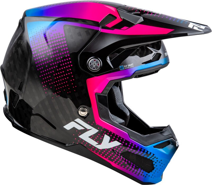 Fly Racing Formula's koolstofprotocolhelm - zwarte koolstof/blauw/roze 73-4467X