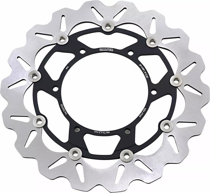 Laser-gesneden dubbele schijfgrond 420 Hoog koolstofloos staal, direct vervangende remrotoren; Heb geen extra onderdelen nodig, bout op, net als een stockremschijf, full-floating ontwerprotors hebben een aluminium middencentrum, verbetert het gevoel en modulatie van het remleven en modulatie, rotoren koel als ze roteren om de bedrijfstemperaturen te verlagen, design is selfsyling, verwijdert wateras, verwijdert water als vervaardigd in spanje, voor maximale brakprestaties en rotor-aanbevelingen met galerrotores.