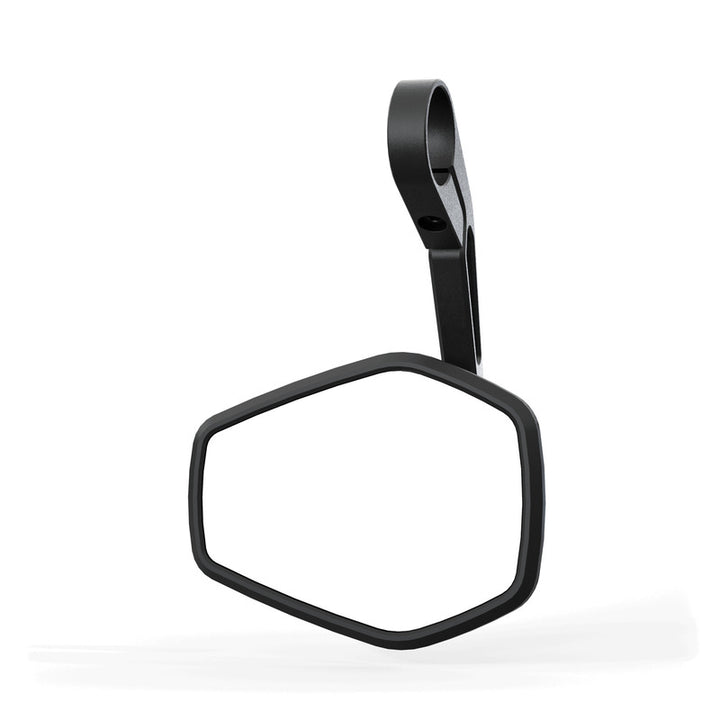 Stijgende en platte trapezoïden creëren het futuristische ontwerp van de highsider Esagano-RS Mirror Series, die dus de ontwerptaal van moderne motorfietsen oppakt. De basislichaam van de spiegelkop, gemaakt van hoogwaardig plastic, omsluit de onderscheidende inleg, die CNC is bewerkt uit aluminium. Dit symboliseert de ontwerptaal van de Esagano -productfamilie en creëert een unieke herkenningswaarde met de stijgende en platte taps toelopende geometrieën. Het geanodiseerde oppervlak van de kraal en mat zwart van het aluminium contrasteert met het oppervlak van de spiegelkop, waardoor het beeld wordt voltooid. De langdurige stendelstam in aluminium belichaamt ontwerp en functie. Op deze manier worden de krachten die tijdens het reizen op de spiegel werken, bijzonder effectief gedissipeerd via binomiale structuren met behulp van spanning en compressiepunten. Tegelijkertijd vermindert deze structuur het gewicht van de spiegelstam en creëert ook een visueel harmonieus algemeen uiterlijk. De stuur van het stuur kan zowel staande als op het stuur worden gemonteerd. De spiegel is gemonteerd met behulp van het optisch bijpassende stuurgewicht Esagano-LS met 12 mm stengelbevestiging of een stuurgewicht in een alternatief ontwerp uit ons assortiment. Als er voldoende ruimte is, kan de spiegel ook rechtstreeks aan het stuur worden bevestigd via de geleverde aluminiumadapterringen