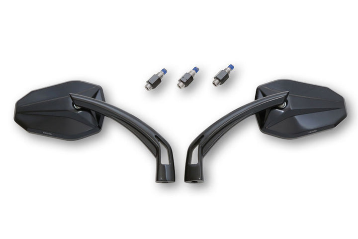 Elegante universele spiegel met een aluminium kop inclusief extra adapter M10 x 1,25 mm met links-hand voor Yamaha, E-goedgekeurd.