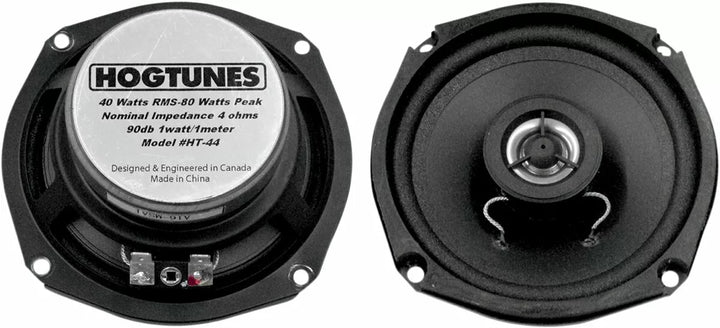 Direct vervangende luidsprekers voor 86-96 Modelfietsen uitgerust met fabrieksradio, fit achter fabrieksroosters, bevat 10 mm zachte rubberen pakkingen voor een verbeterde pasvorm, 4,25 "luidsprekers, 4 ohm, 2-weg geluidsontwerp, featur hogtunes" met fabriekshardware, kunnen worden gebruikt op fietsen met een fietsen met een autoradio