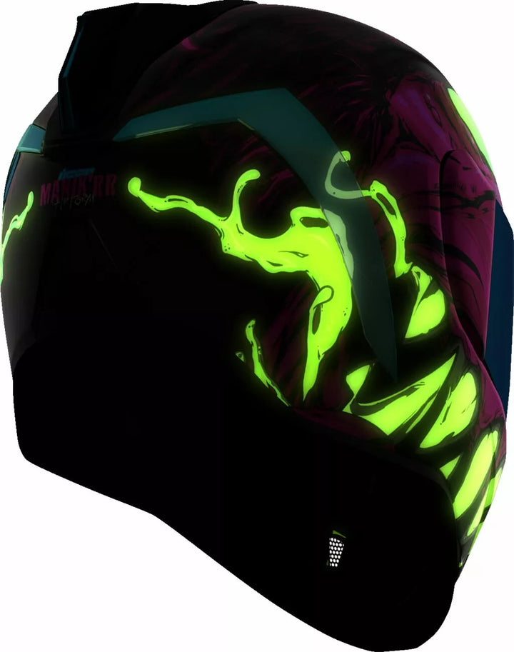 Continu venting-systeem, FAG-vrij pictogram Optics ™ Shield met Rapid-Release ™ -systeem, spuitgegoten polycarbonaatschaal voor sterkte, interne luchtstroomgeometrie, gebeeldhouwde nekrol, prolock ™ switssch, de buitenkant met vergrendeling Swequ-vizier moet alleen worden gebruikt terwijl het belangrijkste gezichtsscherm is in de hoofdtekst in de kiezelachtige hydry ™ 3-pie-vochtige vochtige vochtige vochtige vochtige vochtige vochtige hydry ™ 3-pie-vochtige vochtige vochtige hydry ™ 3-pie-vochtige vochtige vochtige hydry € Voering, interne luidsprekerzakken werken met Icon's R.A.U. Bluetooth -apparaat, inclusief Dark Smoke Dropshield ™ en Rubatone Black SpeedFin ™