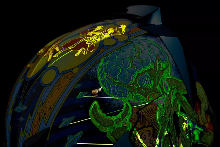 Injection-Molded Polycarbonate Shell for Strength and Durability, Intermediate Headform, FAG-FREE FLITESHIELD ™ and Internal Dropshield ™ give you a clear view of the street in any kind of light Fliteshield ™ Included, Dark Smoke Internal Dropshield ™, Moisture-Wicking Hydradry ™ Removable Comfort Liner, Includes RST BLUE SPOILER, GLOW-INT THE-DARK, Multiple Oversized Intake and Exhaust Ports, Fog-Free, Fogvrije FAG-vrije FLITSHIELD ™ Met zijplaten, verwijderbaar gevormde adem-deflector en kingordijn, verzonken Twin Channel Supervent-koelsysteem, het dropshield ™ -vizier mag alleen worden gebruikt, terwijl het hoofdgezichtsscherm in de volledig gesloten positie R.A.U. Bluetooth -apparaat
