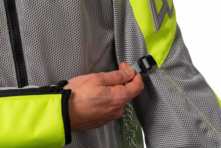 Duurzaam 300D Polyester en Iron Weave ™ mesh-chassis, verstelbare taille- en armband, Icon® Sport Fit, YKK® Zippers, Back Protector EN 1621-2 Niveau 1, EN 17092-4: 2020-A Class