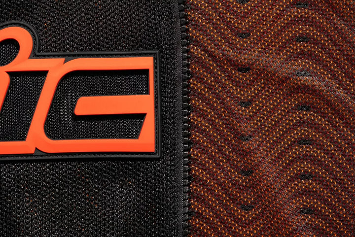 Duurzaam 300D Polyester en Iron Weave ™ mesh-chassis, 1,2 mm-1.4 mm TracSpec ™ leer in primaire crashzone, verstelbare taille- en armband, Icon® Sport Fit, YKK® Zippers, Back Protector EN 1621-2 Niveau 1, EN170-70-2
