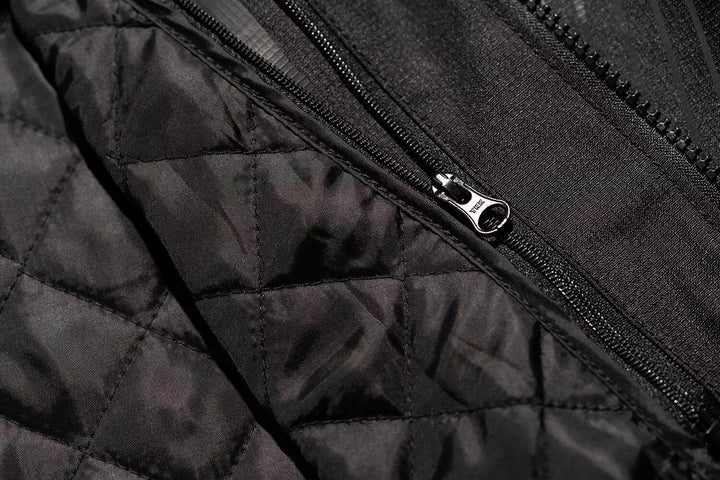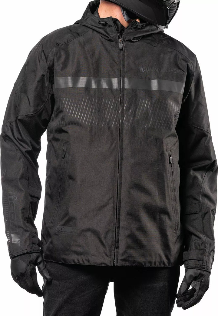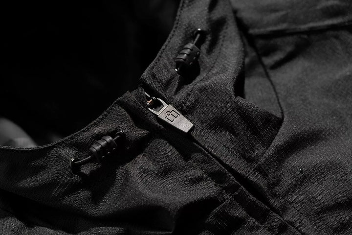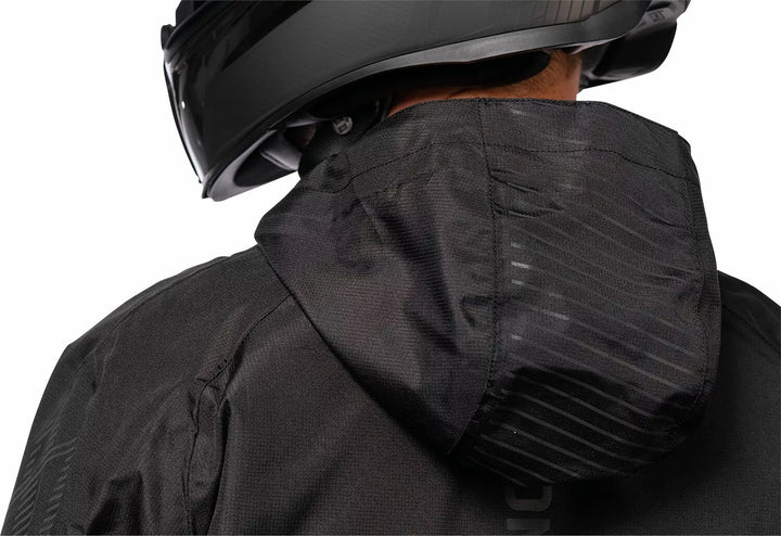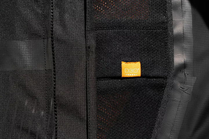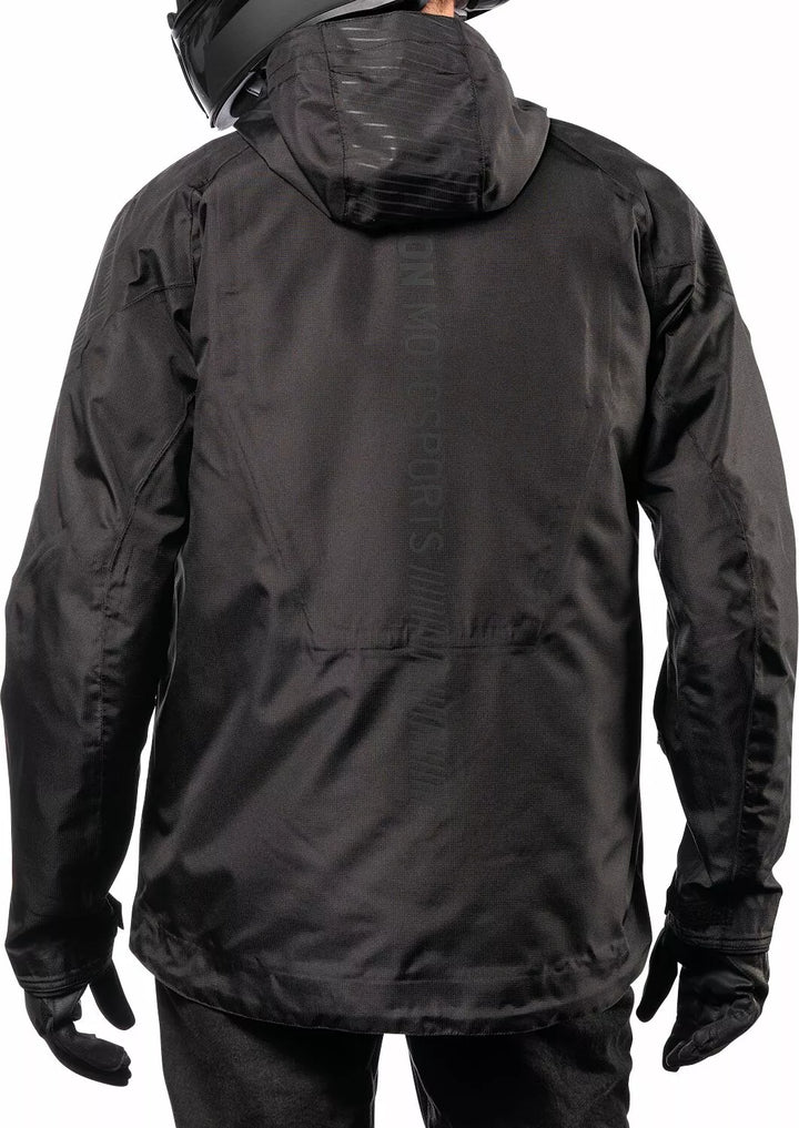 Verwijderbare geïsoleerde vest-voering, interne 300D polyester versterkings, Hycor ™ waterdicht/ademend chassis, oversized putopeningen, Icon® ontspannen fit, rol- en opbergkap, achterbeschermer EN 1621-2 Niveau 1