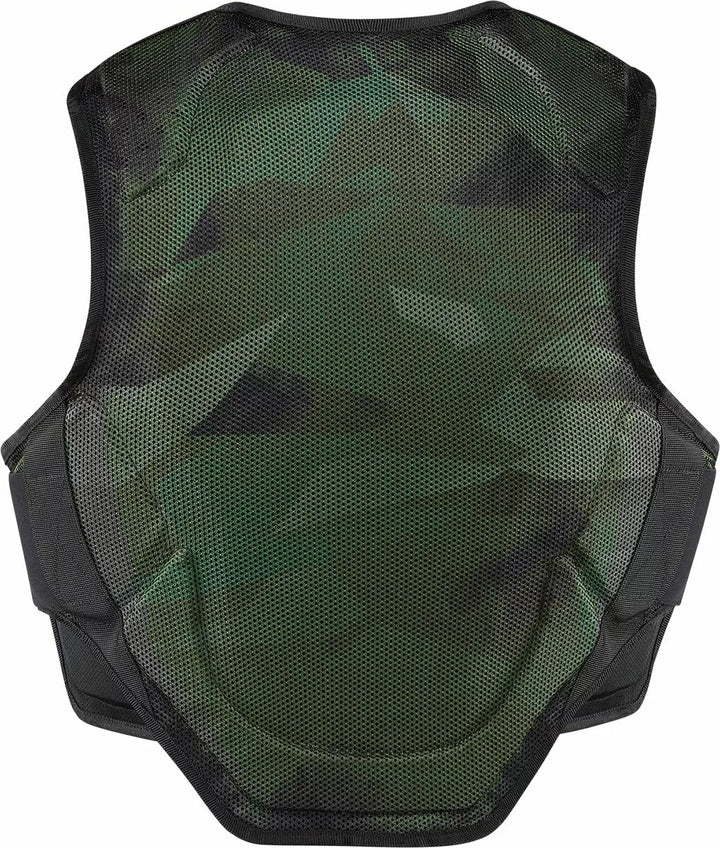 Low-profile ontwerp voor gebruik onder een jas, Iron Weave ™ mesh chassis, D3O® CP1 Chest Impact Protector, D3O® Viper Back Impact Protector, Elastische taille-strapide Een instelbare pasvorm, gesublimeerde grafische afbeeldingen, ontworpen en ontwikkeld in de VS 1621-2: 2014 Niveau 1., Chest Protector EN 1621-3: 2018 Level 1.