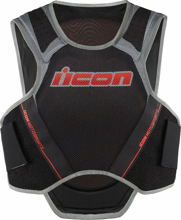 Low-profile ontwerp voor gebruik onder een jas, Iron Weave ™ mesh chassis, D3O® CP1 Chest Impact Protector, D3O® Viper Back Impact Protector, Elastische taille-strapide Een instelbare pasvorm, gesublimeerde grafische afbeeldingen, ontworpen en ontwikkeld in de VS 1621-2: 2014 Niveau 1., Chest Protector EN 1621-3: 2018 Level 1.