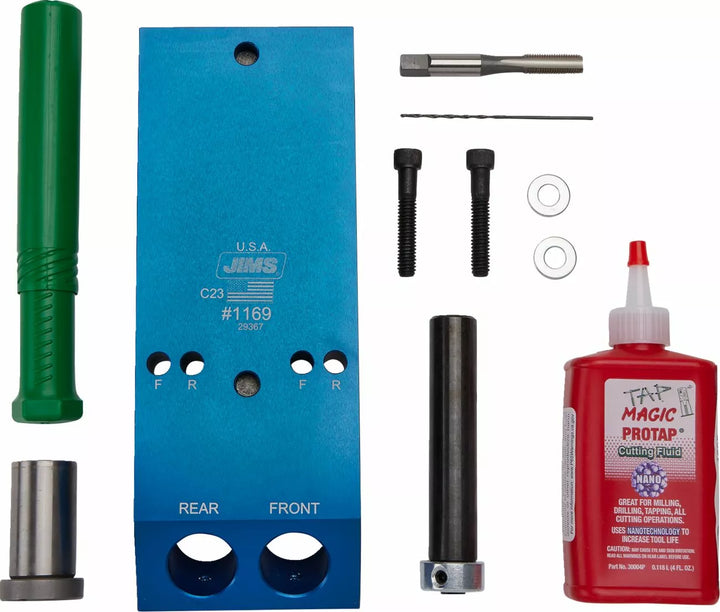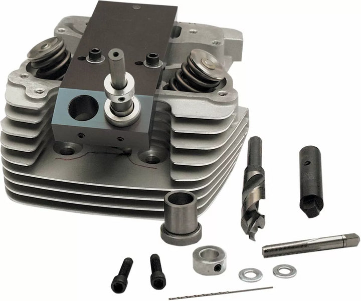 Installatiekit omvat fixte, boorbit, spot face bit en thread-tapping tool, eenvoudig boren, spotgezicht, tik en installeercompressiekleppen, werkt op de voor- en achterste kop, met of zonder kleppen geïnstalleerd, voor big-inch of hoge compressie twin nokken