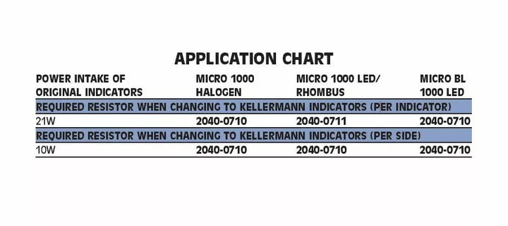 , Bij gebruik van micro 1000 df en een lichtregelbol, is een extra weerstand bij 33 ohm (deel #2040-0712) voor het achterlicht en een extra weerstand bij 7,5 ohm (deel #2040-0711) voor het remlicht vereist.