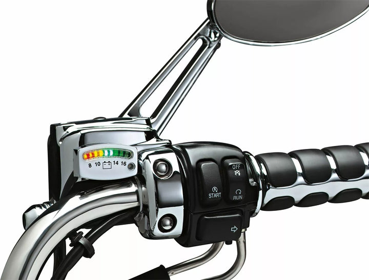 Laat u weten of het laadsysteem van uw motorfiets met slechts een blik werkt, Green LED geeft aan dat het normaal werkbereik van 12,5 tot 14,5 V, Amber LED waarschuwt dat de fiets niet oplaadt, als leesdruppels onder 10V of overtreft 15V, Red Led waarschuwt de Rider, eenvoudige tweedire-connectie, Gemakket Maatregelen Maatregelen Automato Automato Sensor H Cightness Charlness Charlness Charlness Cights Sensor Automato Automato Automatic Sensor.