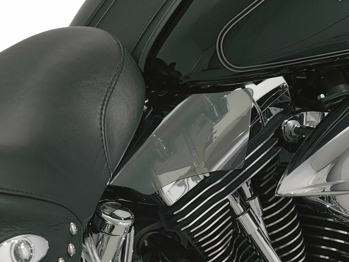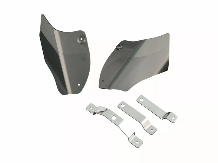 Op fram gemonteerde polycarbonaatschilden helpen de motorwarmte te verslaan, de motorwarmte weg te leiden van de rijder, het rijden op die hete zomerdagen draaglijk, reflecterende rooktint, verkocht in paren